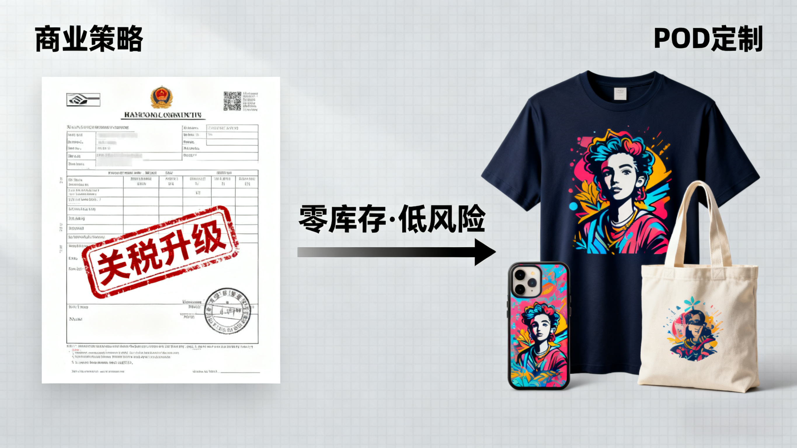 2025 年美国关税政策的 “组合拳” 正持续冲击跨境市场:继 4 月实施 10% 最低基准关税、7 月对 150 余个贸易伙伴加征关税后,10 月新政进一步收紧管控 —— 不仅 800 美元以下小包免税政策早已终止,部分热门品类综合税率甚至突破 35%,一件 50 美元的商品税费最高可达 60 美元,远超商品本身价值。传统 “批量备货 + 跨境运输” 模式正陷入 “囤货亏关税、不囤货丢订单” 的死循环,而 POD(Print on Demand,按需定制)模式却逆势崛起,成为卖家穿越关税风暴的核心利器。