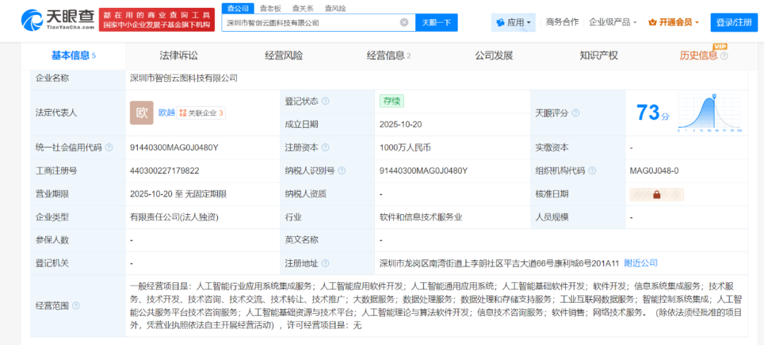 初海视野获悉,根据天眼查最新消息显示,深圳市智创云图科技有限公司近日成立,注册资本1000万元,由赛维时代全额持股。