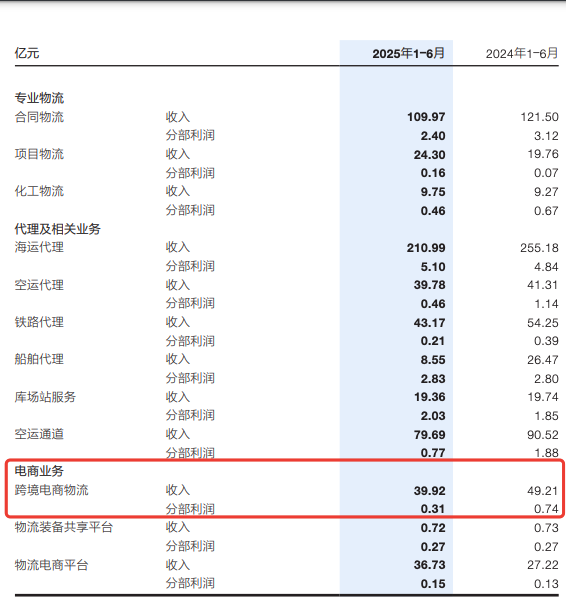 中国外运称,主要受市场环境及贸易政策影响,空运市场运价及公司跨境电商物流业务量均同比下滑,而部分运力成本相对刚性,导致跨境电商物流板块分部利润同比下降较多。