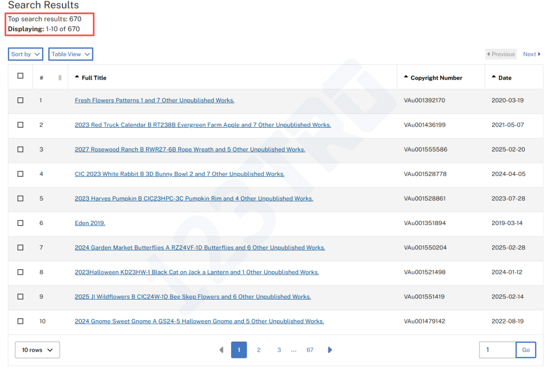 原告名下一共有600多条版权,各位卖家朋友的产品最好不要出现她的作品
