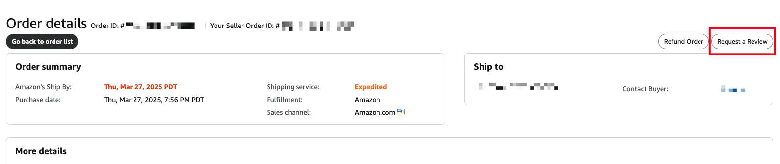 2. 「请求评论(Request a Review)」按钮:亚马逊官方提供的评价请求工具
