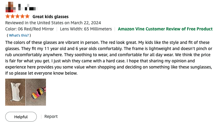 评论下方的「Report」按钮可以针对不适合的评论向亚马逊检举。