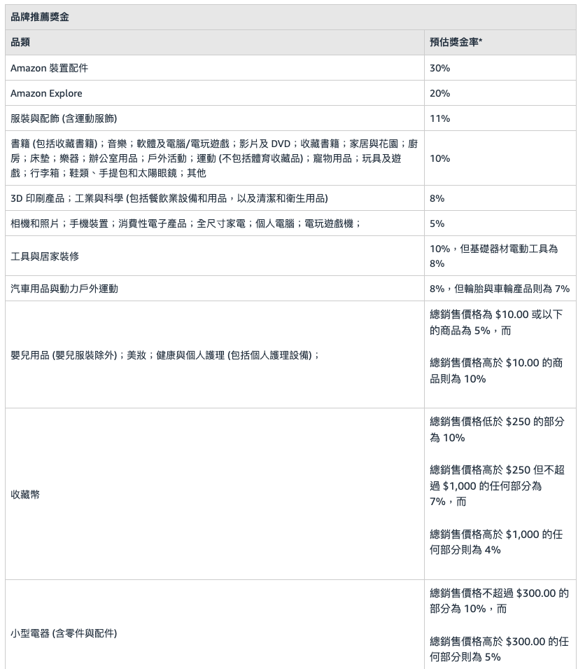 亚马逊的联盟行销计画(Amazon Associates)通常给推荐者的分润在1% 到4% 之间,而品牌推荐奖金计画的回馈则高达10% 左右,对于品牌而言更具吸引力。
