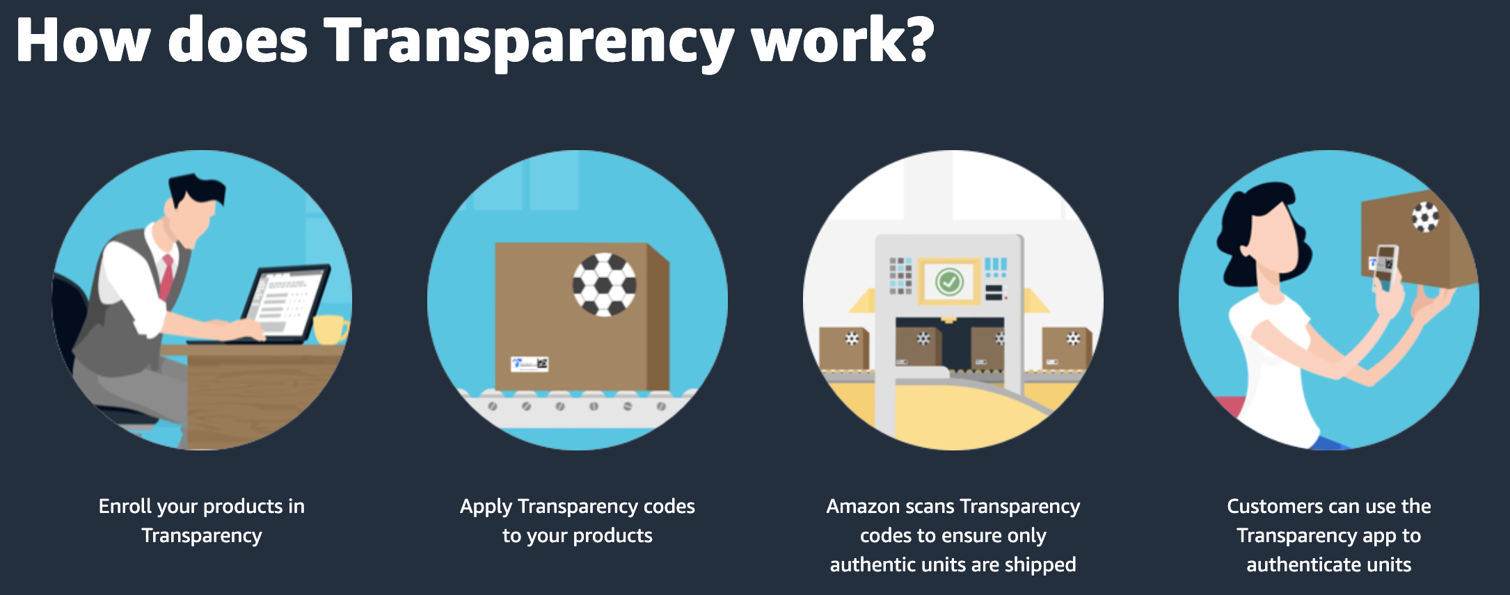 2018 年 8 月,Amazon 为了维护自己的品牌声誉和消费者权益,打击跟卖与销售盗版商品,提出了「透明计划」(Transparency program),希望能杜绝恶意跟卖。