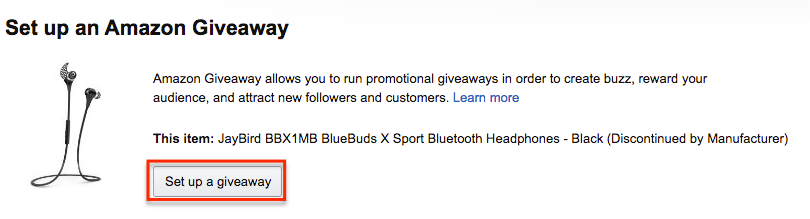 登入你的 Amazon 帐号之后,你可以到 Amazon Giveaway 的页面中,寻找自己合意的产品类别,点选该产品的产品页面,拉到产品页的最下方(在使用者评论之后),即可看见如下图所示的「Set up a give away」按钮。或是你在一般的产品页面中,也可以拉到产品页面的最下方,若能作为 giveaway 的产品,自然会显示如下图呈现的样貌。