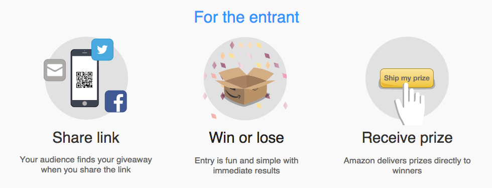 消费者参与 giveaway 的过程非常简单,只要根据卖家的指示动作,如:分享连结、观看 Youtube 影片、成为社群媒体中的追踪者….,动作完成之后消费者就会获得一个惊喜箱,根据卖家的设定判别是否获得免费赠品,而 Amazon 将会为将奖品送到消费者的手上。