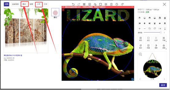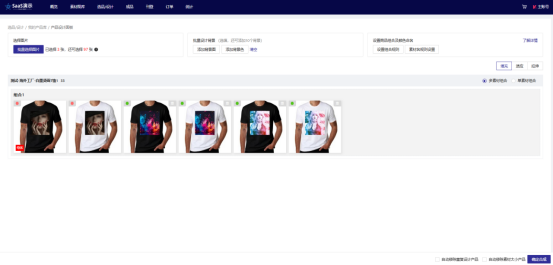 设计成品效果图,【选品】-进入产品,进入【批量设计】,选择素材保存设计