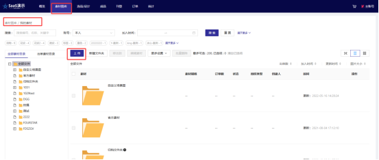 导入原图素材,进入【我的工作台】-【素材图库】-【我的素材】-【上传】,批量上传素材