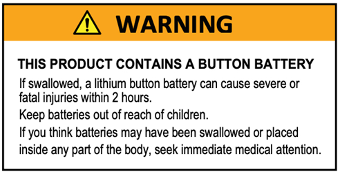 在含有钮扣/硬币电池的消费品的包装上和随附的说明书中必须有警告语。如果消费品是无包装供应的,或货物没有提供说明,则必须在消费品上贴附或加上警告语,以提醒消费者产品中含有钮扣/硬币电池,以及钮扣/硬币电池对儿童构成的危险。警告必须突出,且清晰可见。