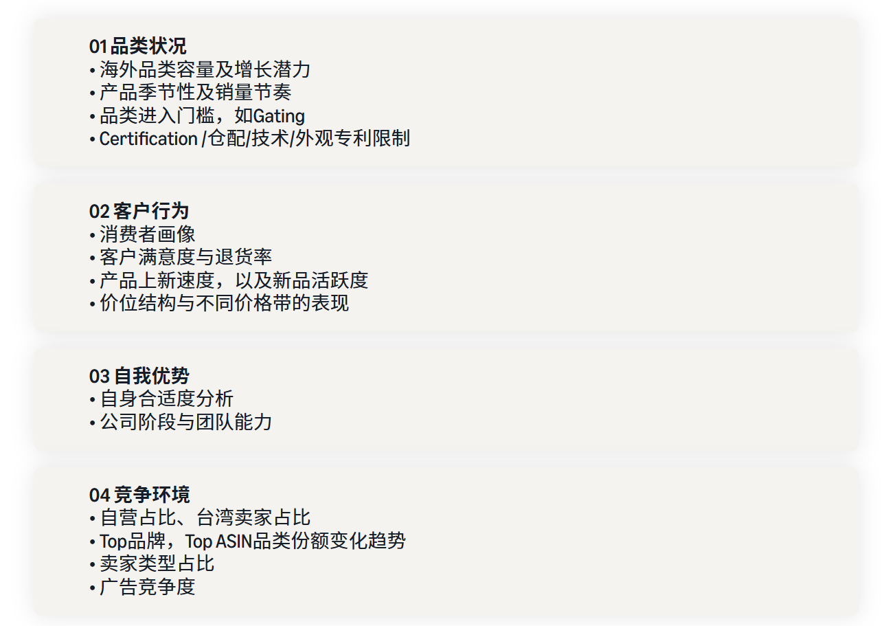 ⭐首先,了解海外品类和成长潜力。同时,建议卖家专注于产品的季节性和销售节奏,勿忘评估品类进入的门槛。这些因素可能成为进入品类的障碍,也可能成为创造竞争优势的机会。