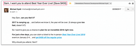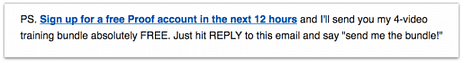 注意:如果你写的是 HTML 电子邮件,你可以把一个出现在过广告正文的 CTA 再用 PS(并附有 CTA)的形式呈现出来。