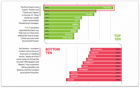 研究显示,当电子邮件的主题中包括「thank you」这个词,其用户参与度高于平均水平。