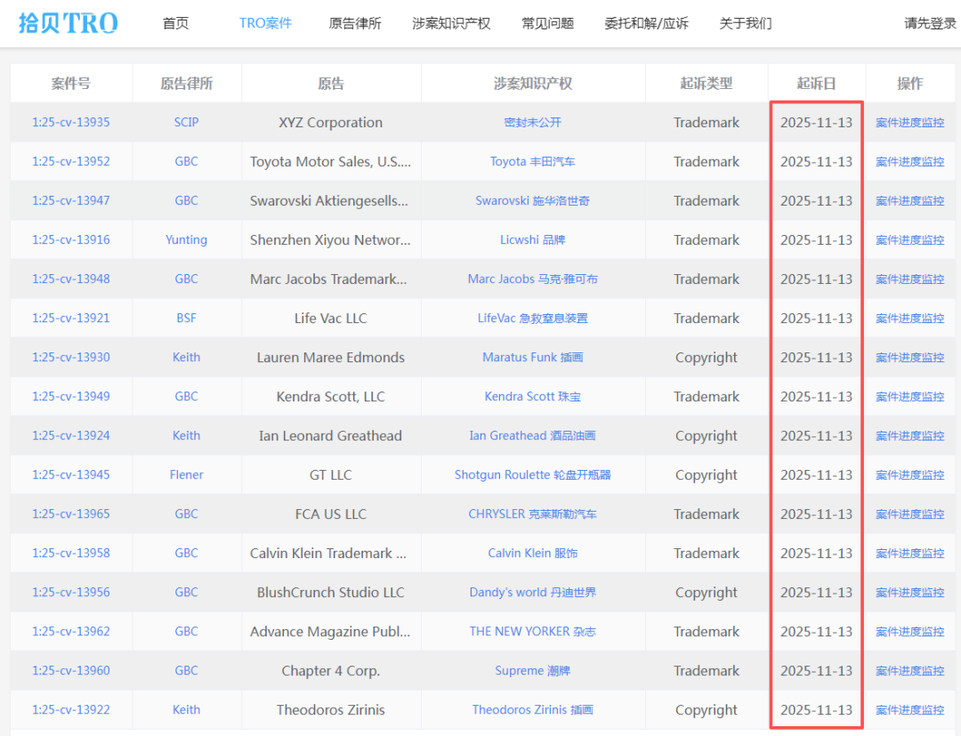 2025年TRO立案已达2500多起,各位卖家朋友可核对TRO侵权资讯及法院新立案信息,检查是否存在商标、版权或专利的近似情况。如发现存在侵权风险,请立即采取下架措施并制定相应预案。