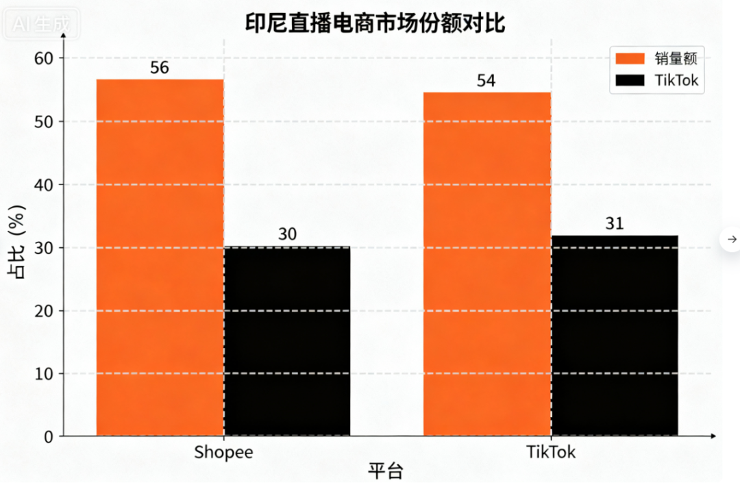 巨大的市场潜力吸引了众多玩家入局,东南亚内容电商赛道竞争日趋激烈。电商巨头 Shopee 同样紧盯这一风口,持续加码内容生态建设:升级直播功能 Shopee Live,助力商家打造沉浸式带货场景;推出短视频种草专区 Shopee Video,鼓励达人与品牌共创原生内容,构建多元化种草矩阵。Populix 的调查数据显示,在印尼直播电商市场,Shopee 曾占据明显优势 ——2023 年上半年,其直播电商销量占比达 56%,销售额占比 54%,均领先于 TikTok 的 30% 和 31%。今年双 11 期间,Shopee 在内容领域持续发力,大促开场前 4 分钟直播带货量突破 1100 万件,跨境直播总时长超 3000 万小时,短视频累计观看量接近 1.4 亿次,表现同样亮眼。