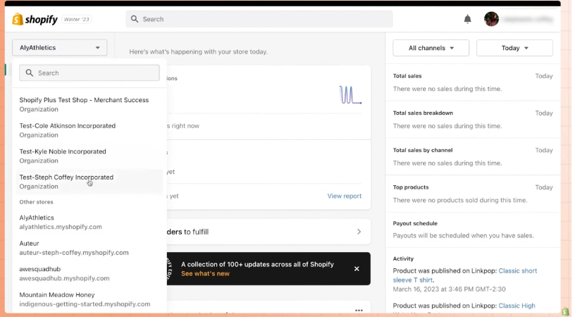 从桌面管理多个 Shopify 商店是一项无缝的过程。完成每个商店的 Shopify 注册后,切换它们就很简单了: