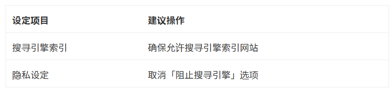 正确设置搜索引擎可见度对于网站架构优化至关重要。检查以下设定: