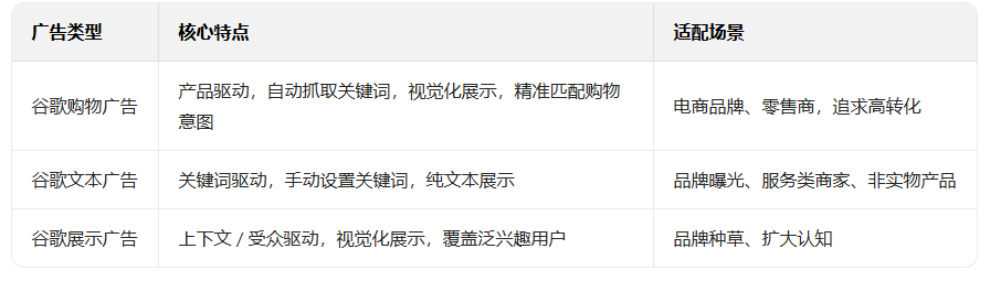 四、谷歌购物广告 vs 其他广告:核心差异