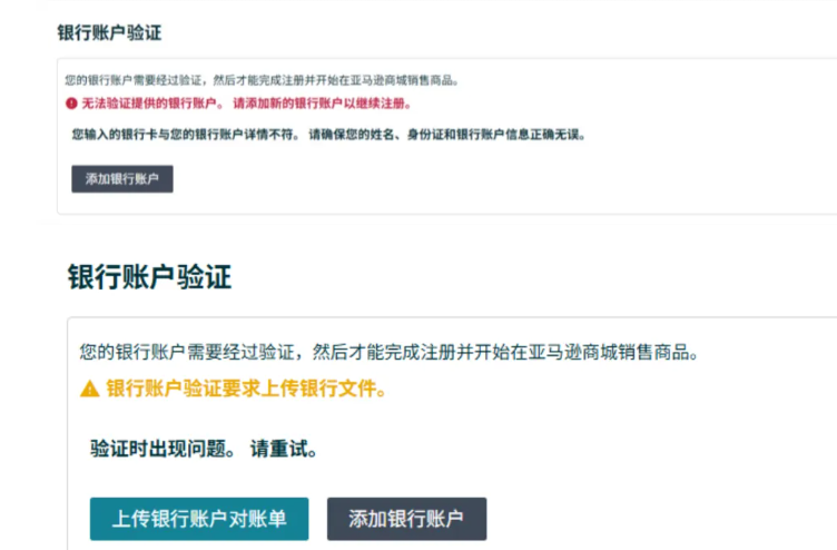 银行账户验证失败了,我可以申诉吗?怎么申诉? 您将收到邮件通知或在注册页面查看验证结果,您可以查看您未能通过银行账户验证原因的更多信息。您将有多个选项来重试该流程,包括更换银行账户,重新提交银行账户信息等。亚马逊卖家支持团队也随时为您提供帮助。
