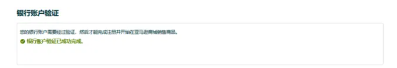 🔺请注意: 一般等待24小时之后,刷新界面您会看到银行账户验证的结果,如果您看到如下提示,意味着银行账户验证通过。