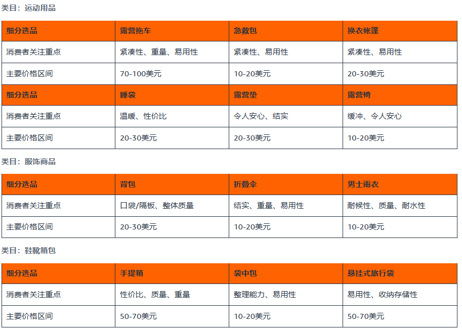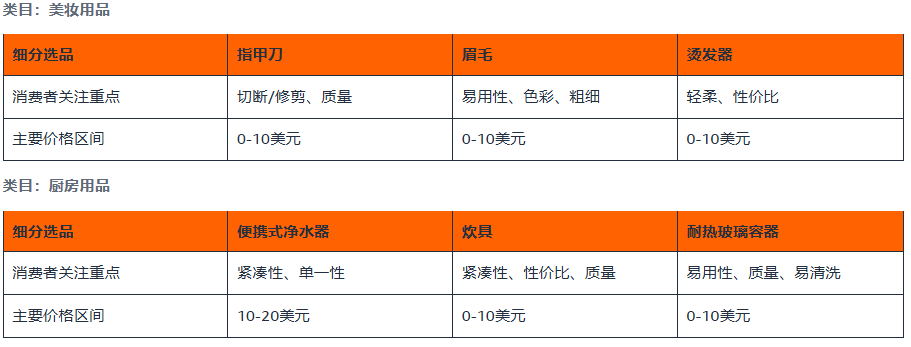 卖家们可以重点关注以下表格中的热卖细分选品: