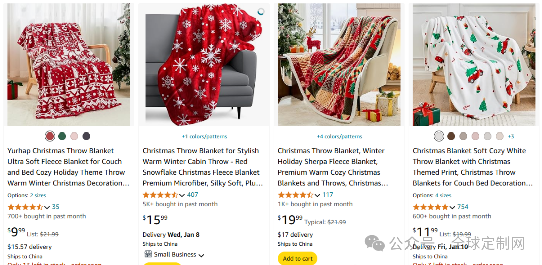 • 节日限定款:圣诞节的圣诞树与驯鹿、光明节的特色符号、新年的喜庆纹样,这类节日主题毛毯既是家居装饰好物,又是走亲访友的优质礼品,在节日季销量一路飙升。