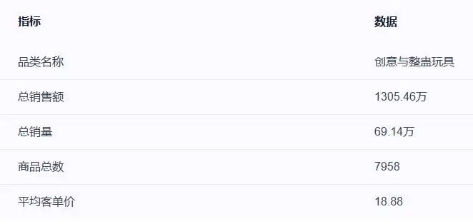 数据显示,创意与整蛊玩具品类在 TikTok 平台表现亮眼,总销量达 69.14 万件,总销售额 1305.46 万美元,平均客单价 18.88 美元。这一数据充分说明该品类市场接受度广、用户购买频次高,尽管客单价偏向大众化,但凭借海量订单积累形成了可观的整体销售额,彰显出强大的大众化吸引力。