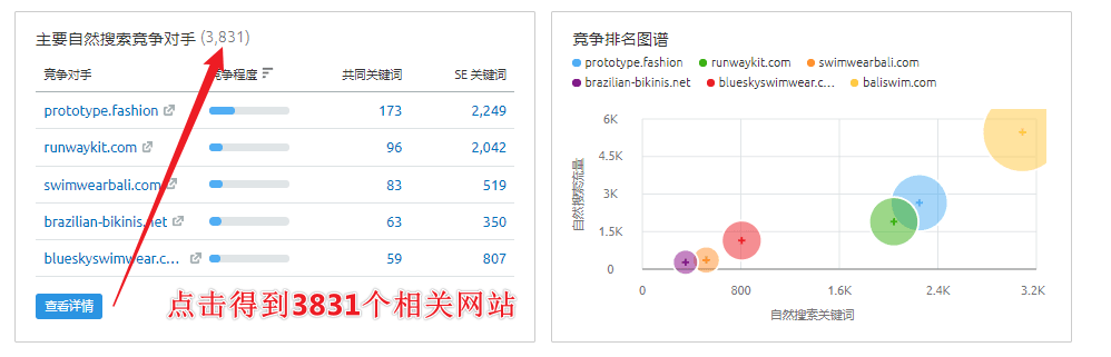 如果想找到更多的竞争对手,可以在自然搜索研究里输入你的域名,然后点击竞争对手