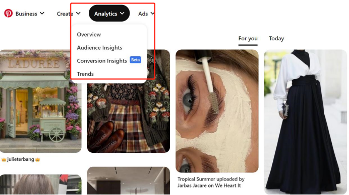 ②在Pinterest上使用Pinterest Analytics进行信息追踪。Pinterest Analytics可以查到曝光率、覆盖率、评论次数、点赞量等等相关信息,便于商家更了解受众用户新讯息,调整Pinterest作品,完善引流工作。