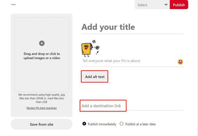 ①在设置完信息后可以添加Rich Pins链接到独立站,利用Rich Pins的商家销售额有明显增加。