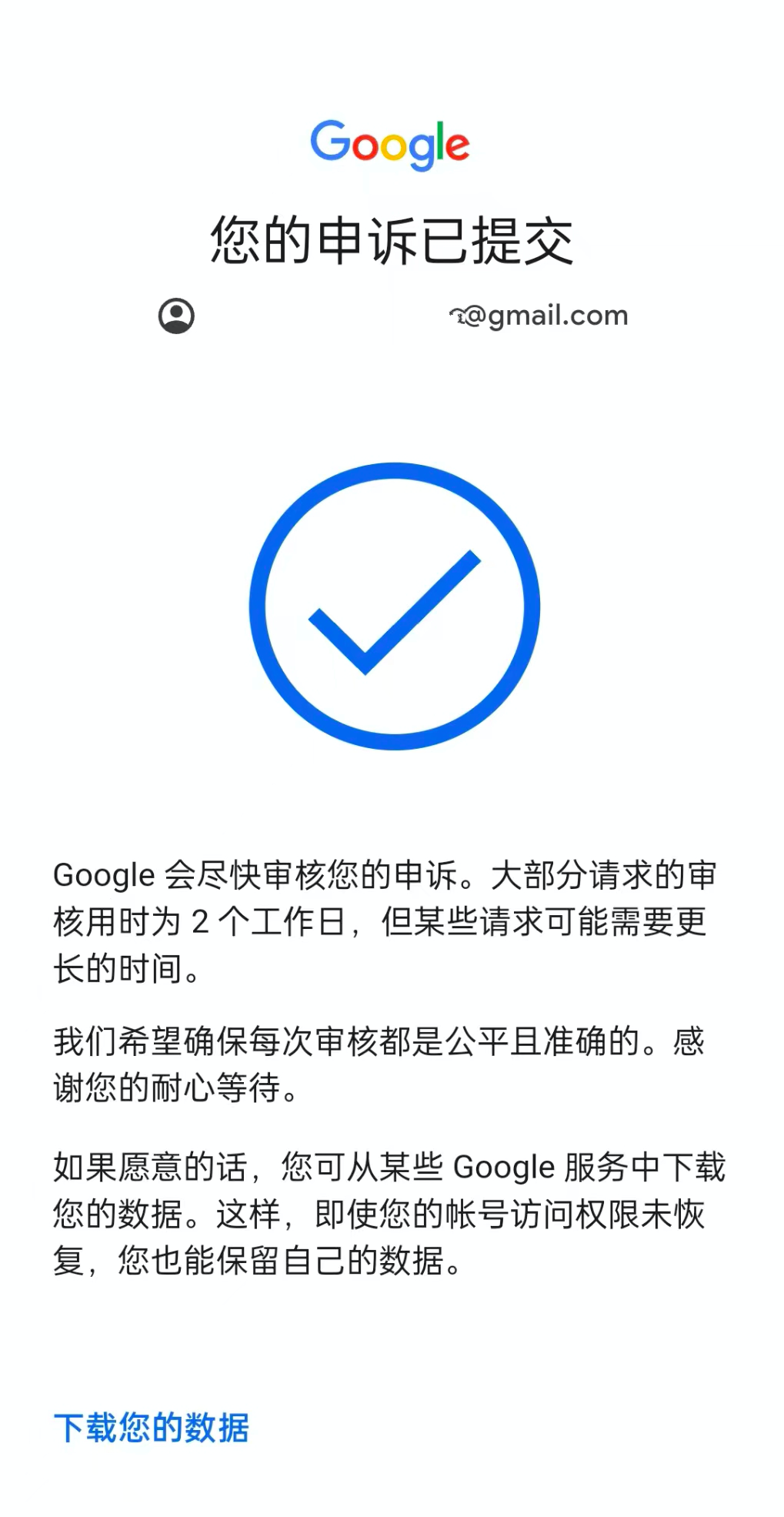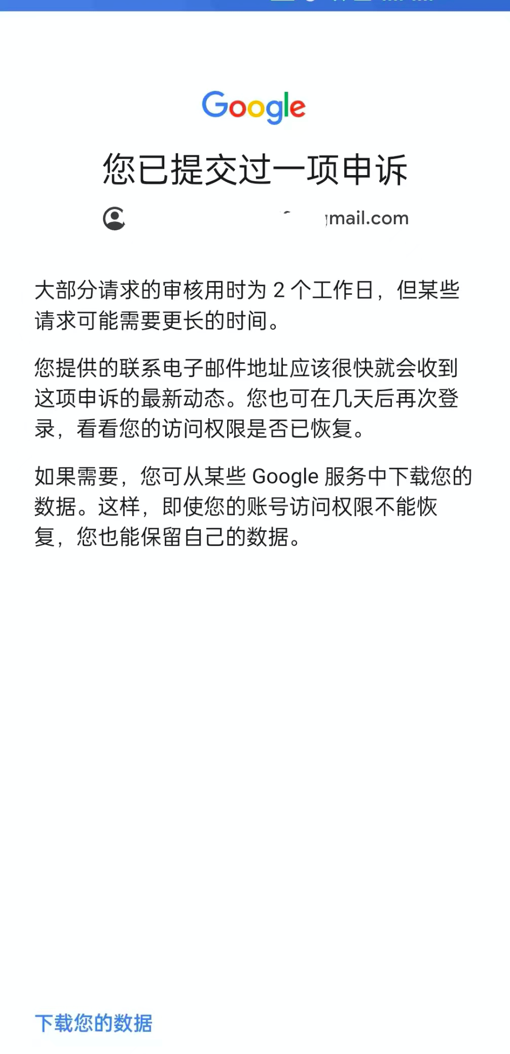 如果谷歌还没完成审核,你重复提交申诉,会有这样的提示。