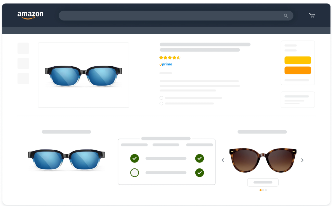 比较图表模块提供了显示产品信息(例如型号类型、尺寸和其他特征)的机会。它还允许您突出显示您销售的其他产品,因此您可使用这些表格作为向出现在产品描述中的买家进行交叉销售或追加销售的机会。