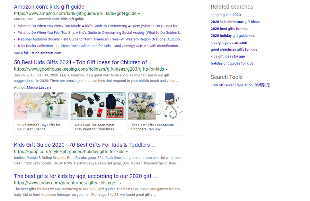 比如我们搜索:kids gift guide,就会出现很多网站。