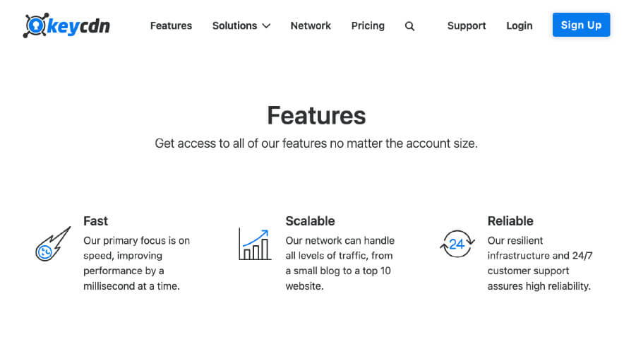 KeyCDN 优点是有简单易用的CDN 管理系统,只需透过简单几步骤的CDN 设定即可开始,且提供多种配置选项,还有24 小时客服协助。