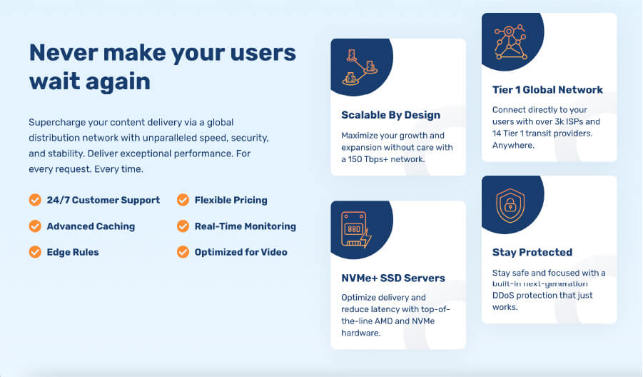 Bunny.net 致力于提供更快、更安全、更可靠的网络服务,利用顶级硬体优化传输,并减少延迟。