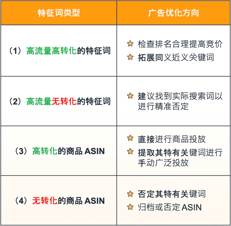 1、特征词分析:首先,卖家需要通过分析搜索词报告来识别那些能够带来高流量和高转化的特征词。这些词是买家在寻找产品时输入的关键词,它们直接影响着产品的可见度和吸引力。