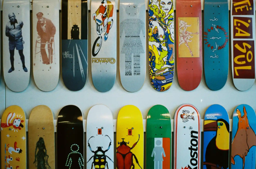 街头艺术风格 涂鸦、大胆配色、粗犷线条,符合滑板的都市气质,年轻人特别喜欢。