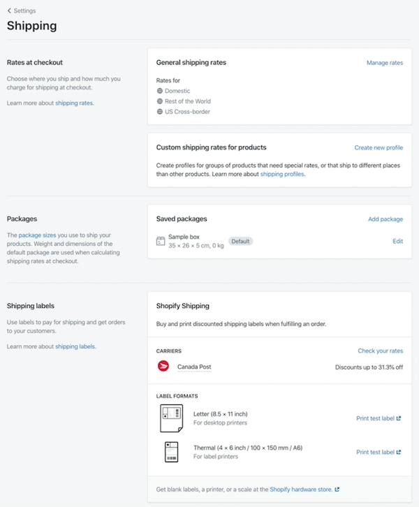 这里主要有两种收款方式:Shopify payments和PayPal。这里要注意,接收款项是有手续费的。