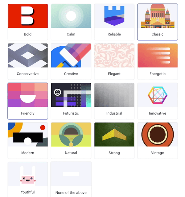 点击最下方的“NEXT”按钮,继续选择你喜欢的一种设计风格,这里边有经典的、创意的、偏向于年轻人的,等等。这里,我选择“Friendly”这个,感觉比较合适。