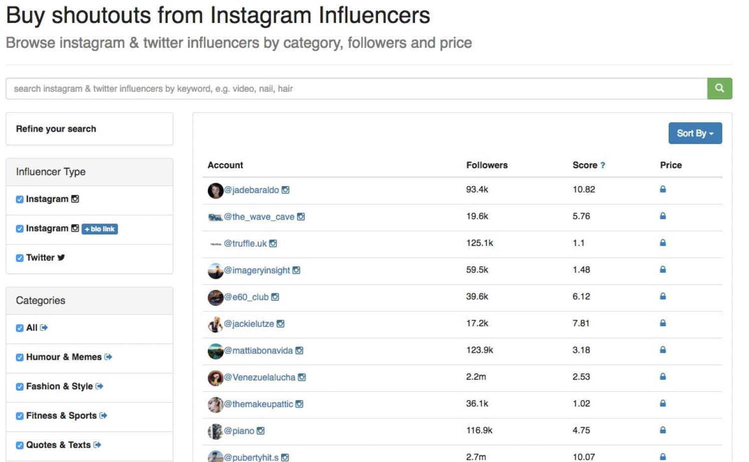 Shoutcart是一个网红商城,任何人都可以购买推广服务。Shoutcart的创作者范围广泛,有适合任何预算的网红,因此如果你预算有限,这是一个很好的平台。