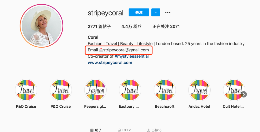会搜索出很多推荐的行业网红之类,可以点击查看他们的instagram页面内容,看下是否符合我们的需求,如果合适再进一步联系。