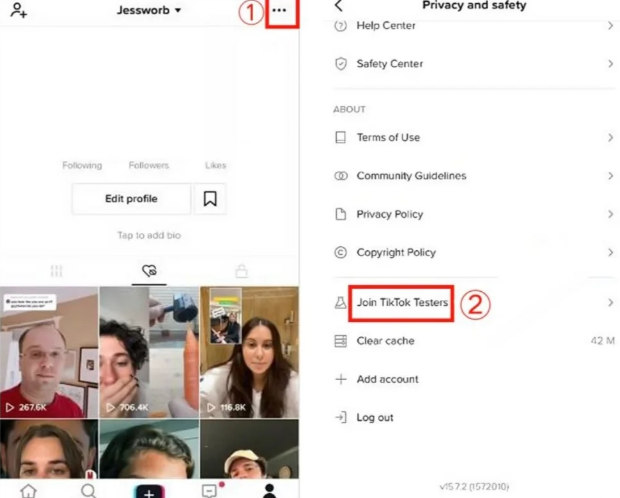 如果没有 Bio 和 Website 的选项,可以点击右上角【…】— 【Join TikTok Testers】进行申请,申请完成再进行(1)的操作就可以添加主页链接