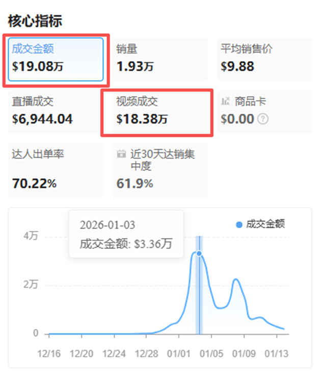 以TikTok家居赛道近期爆火的一款水晶氛围灯为例,它正是凭借极具视觉冲击力的光影记忆点,在短短7天内就实现了销售额突破50万的佳绩。其中,1月6日发布的一条带货视频堪称流量典范。视频中,达人将水晶灯摆放在房间的不同角落,简洁而直观地展示了它点亮后美轮美奂的光影效果,仿佛为观众带来了一场沉浸式的小型灯光秀。最终,这条视频收获了264万的播放量,并促成了3600单的销量,成为推动该单品成功出海的重要力量之一。