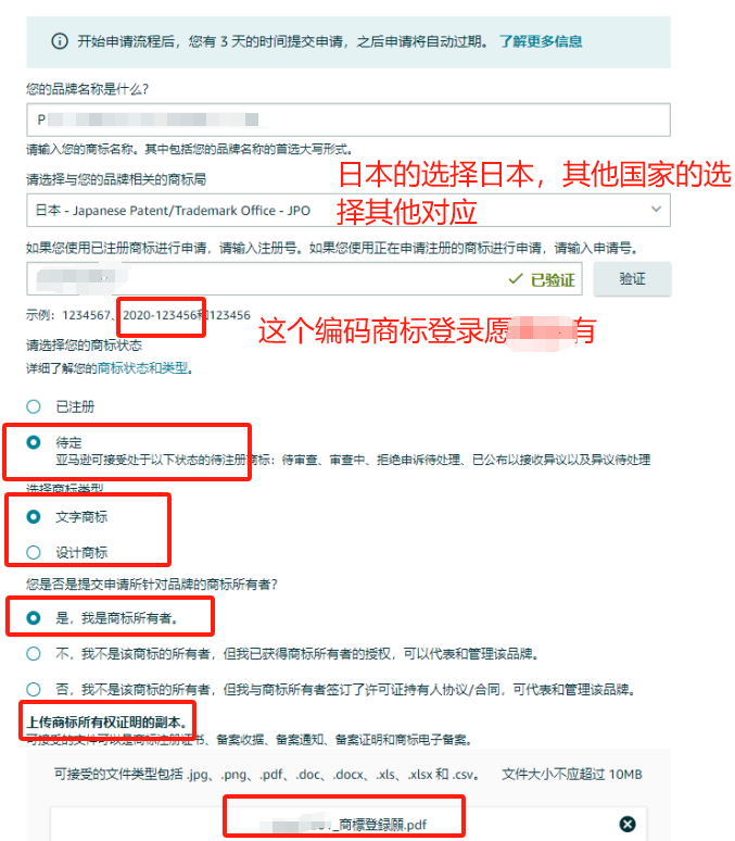 提出申请后1-2天内会被分配商标注册的负责人,给你发送出願書類进行确认,会记录你的申请编号,以用于亚马逊注册。