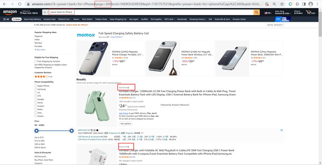 还有搜索结果页中,翻到后面页数,甚至200页全是广告,都在排队等位置。这意味着什么?卖家不再是"投广告抢流量",而是在有限的优质曝光位里排队竞争。真正有价值的曝光,依然高度集中在搜索结果前三页甚至是首页的少数位置。