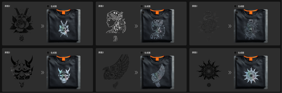 除了亚克力效果,灵图POD还支持批量生成厚板烫画特效。这种特效能够让印花更加立体,呈现出硅胶质感,适用于T恤、帽子等服饰类商品。