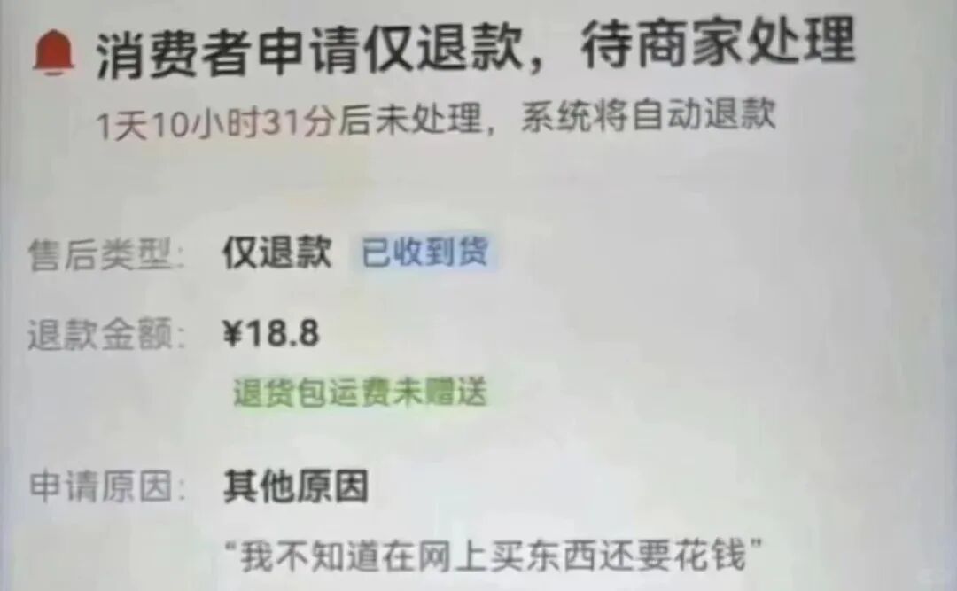 话说到此处,就不得不提当年火出圈的一张仅退款神图: