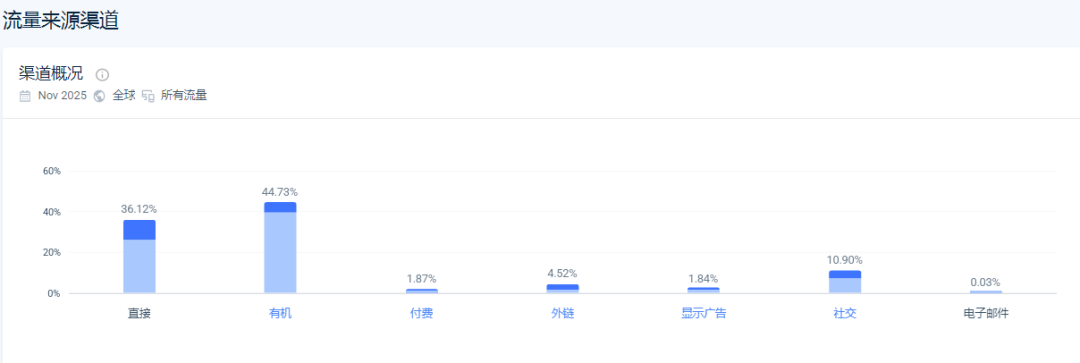 我们再来看下独立站的流量来源: