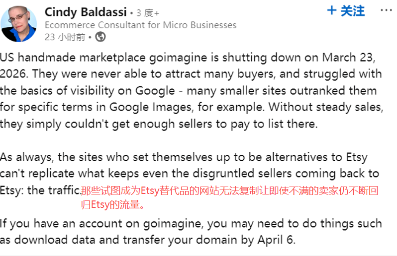 同时,其在收费上对卖家格外友好,与动辄提高佣金的Etsy形成鲜明对比;尤其是2022年Etsy爆发卖家罢工潮后,Goimagine一度被视为“有情怀的替代选择”。