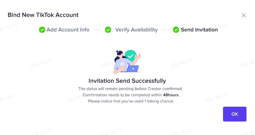 step3:根据指引完成操作(需要TikTok端48⼩时内在app端操作确认)