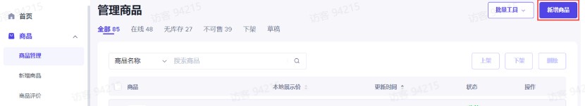 Step1 点击“新增商品 ”